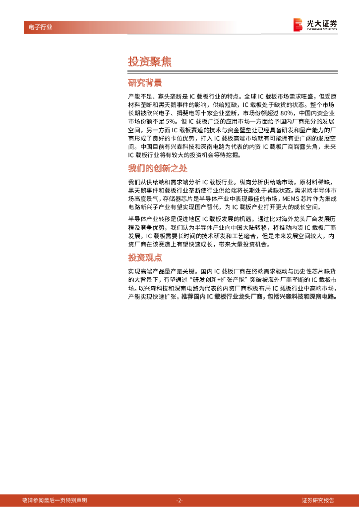 光大证券:半导体行业深度报告七之IC载板篇:国产替代加速推进,兴森深南快速成长.pdf
