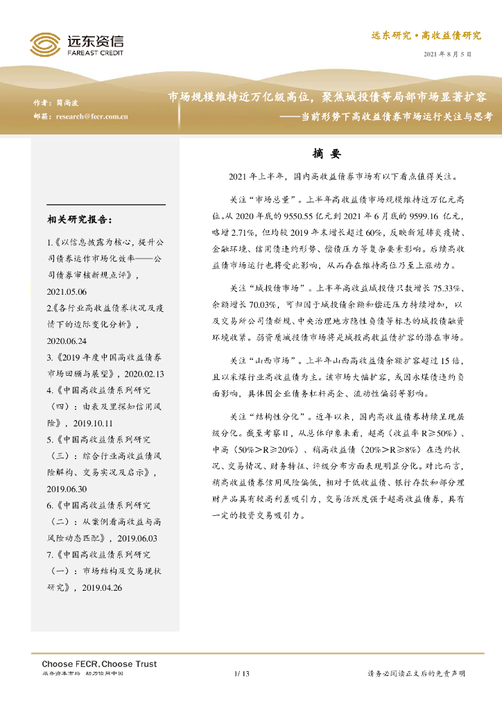 远东资信:市场规模维持近万亿级高位,聚焦城投债等局部市场显著扩容——当前形势下高收益债券市场运行关注与思考.pdf