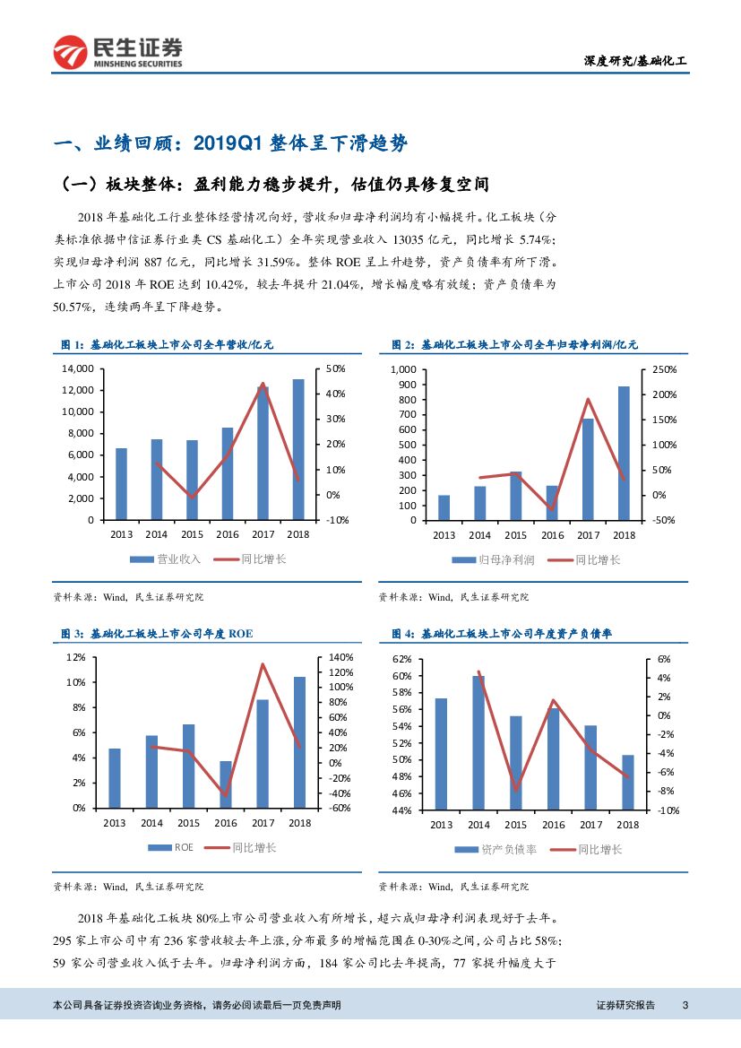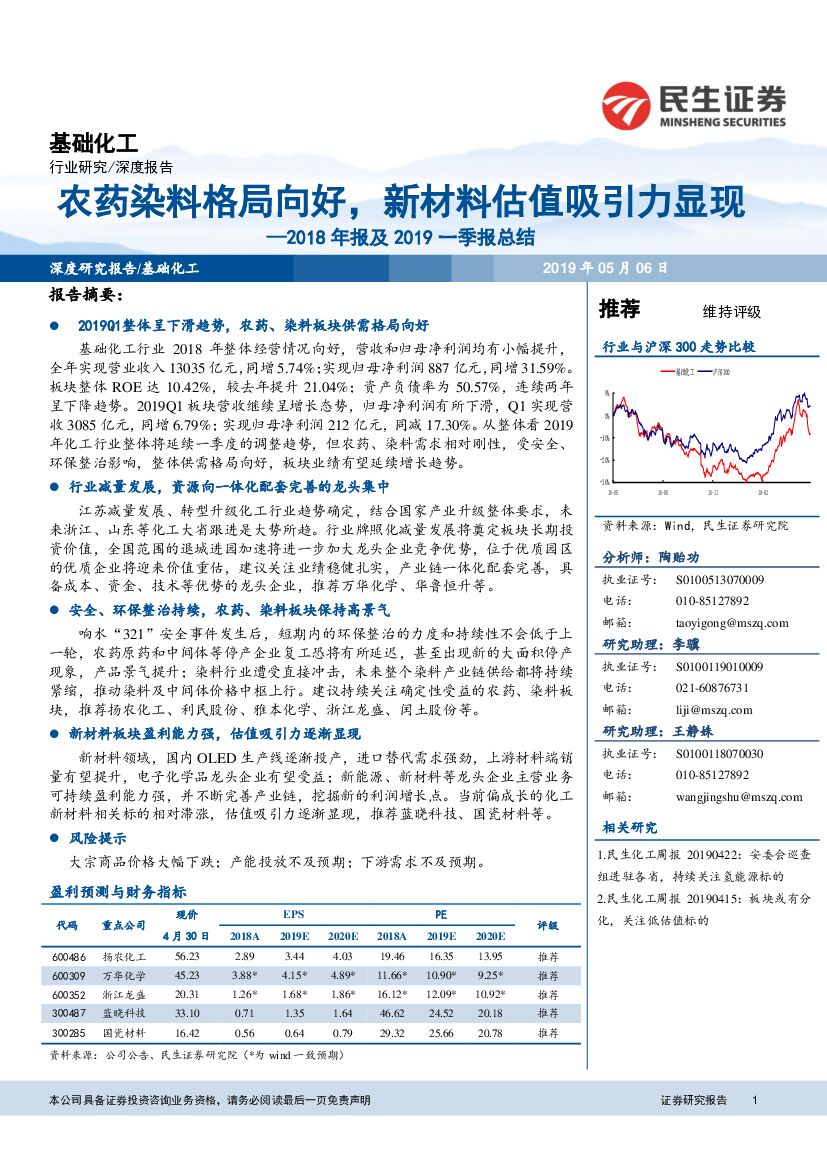 民生证券:基础化工深度报告:2018年报及2019一季报总结-农药染料格局向好,新材料估值吸引力显现.pdf