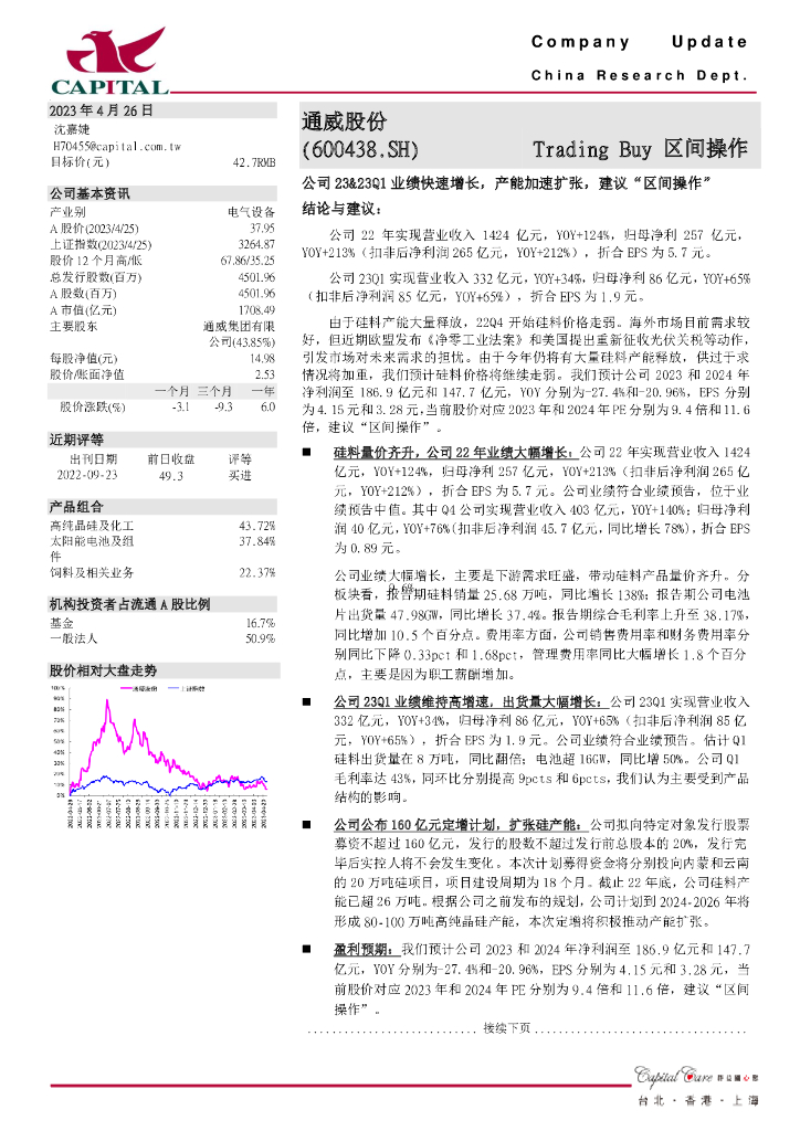 群益证券:通威股份(600438)-公司23&23Q1业绩快速增长,产能加速扩张,建议“区间操作”.pdf