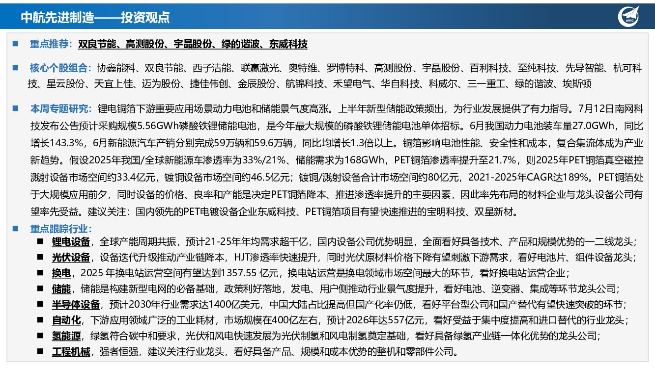 中航证券:先进制造行业周报:受益下游新能源车和储能高景气,PET铜箔产业蓄势待发.pdf