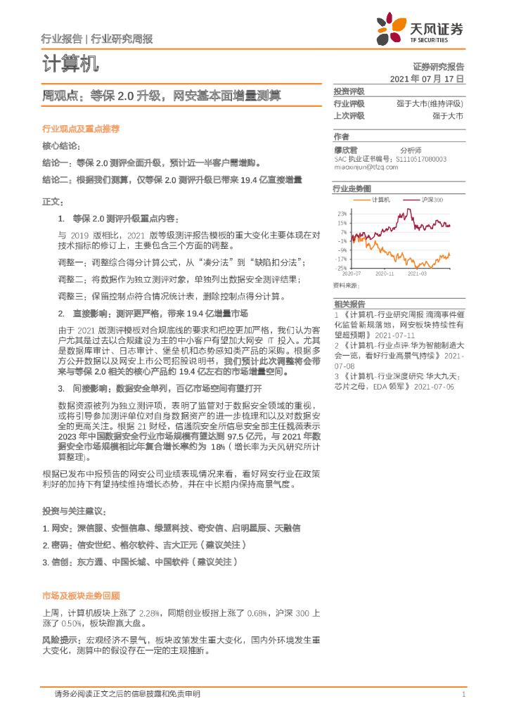 天风证券:计算机周观点:等保2.0升级,网安基本面增量测算.pdf