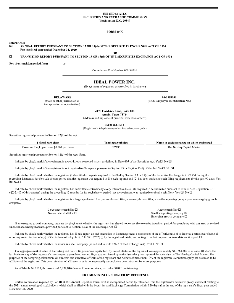 Ideal Power(IPWR)2020财年年度报告(英文版).pdf
