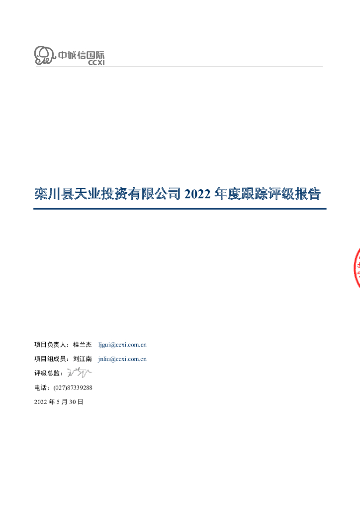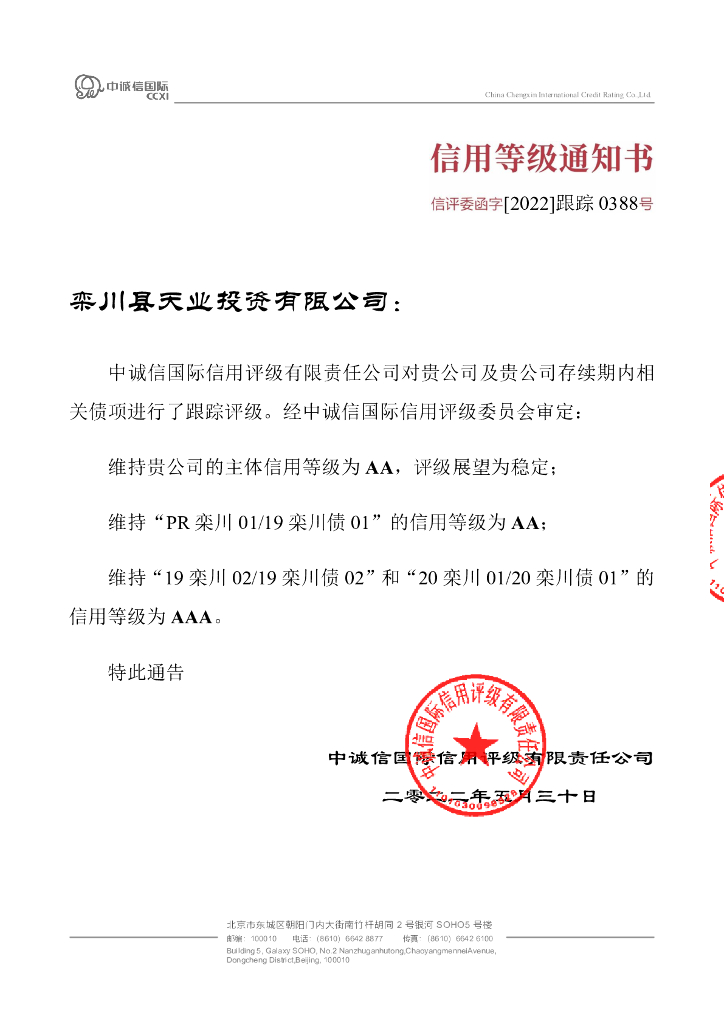 中诚信:栾川县天业投资有限公司2022年度跟踪评级报告.pdf