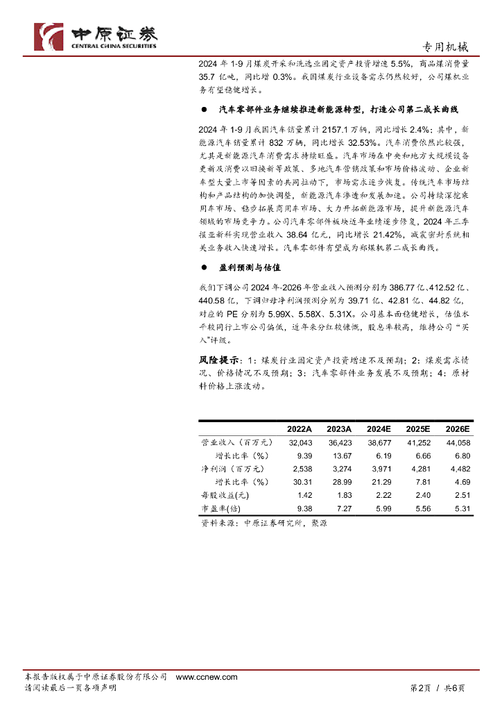 中原证券:郑煤机(601717)-三季报点评:三季报增速小幅放缓,煤机结构优化业绩稳健增长.pdf