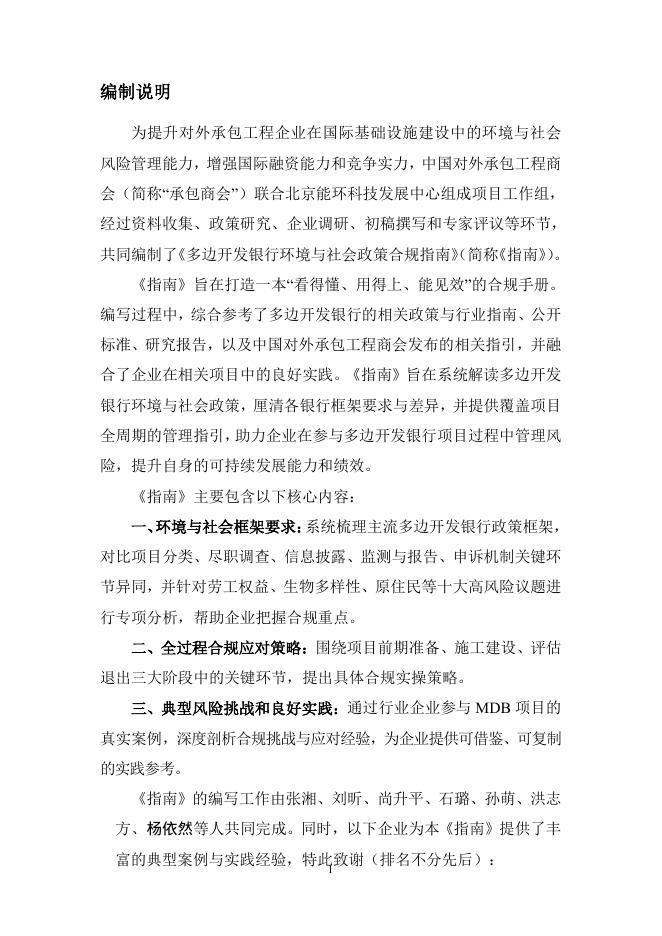 中国对外承包工程商会:2025年多边开发银行环境社会政策合规指南(简本).pdf