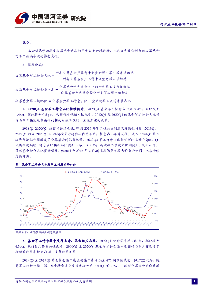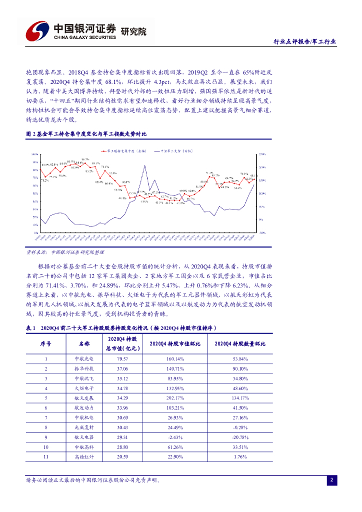 中国银河:2020Q4基金军工持仓分析:基金持仓占比再提升,继续坚守优质赛道.pdf