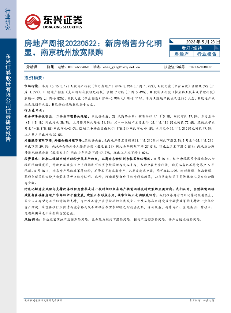 东兴证券:房地产周报:新房销售分化明显,南京杭州放宽限购.pdf