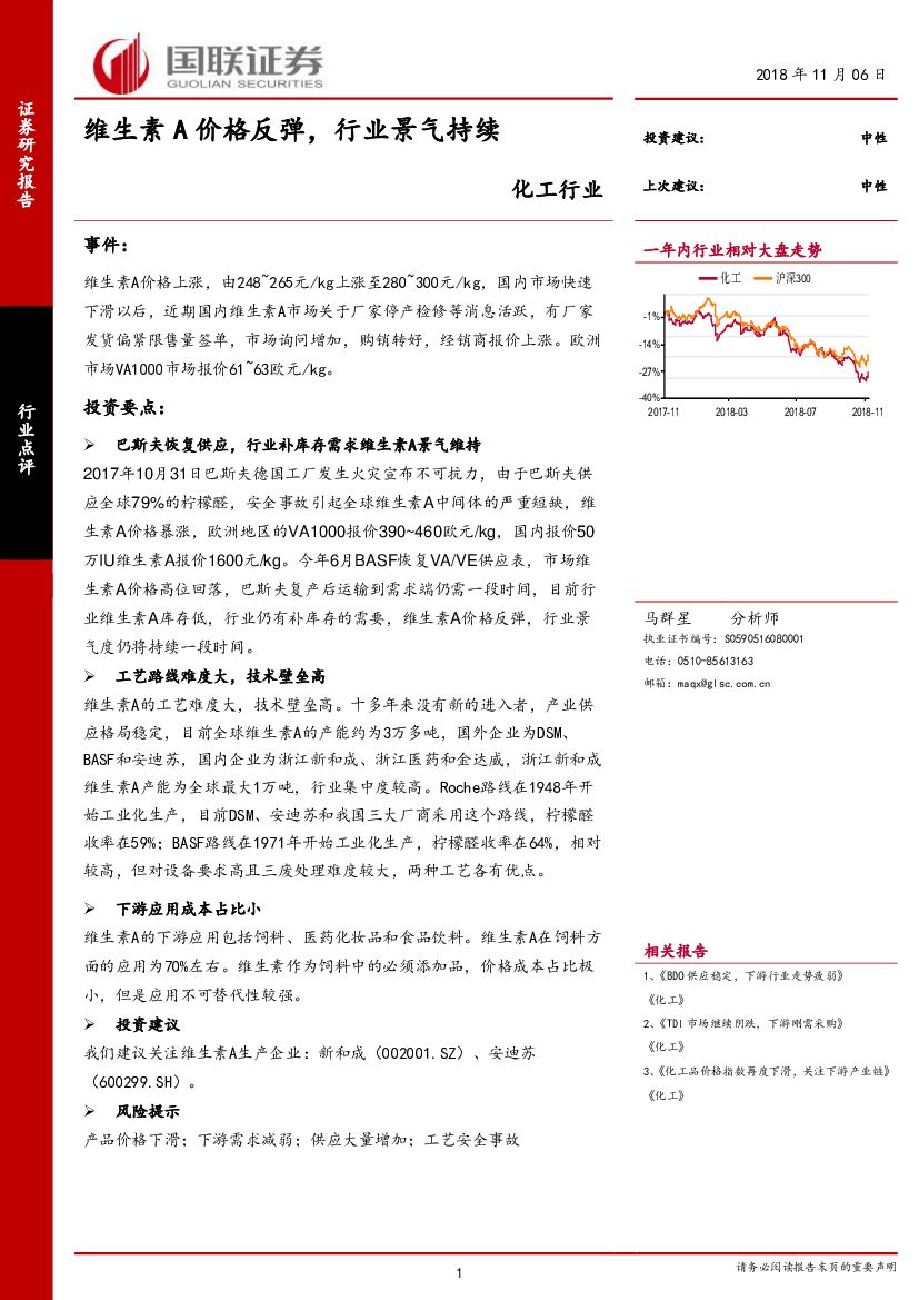 国联证券:化工行业点评:维生素A价格反弹,行业景气持续.pdf