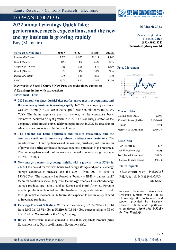 东吴证券国际经纪:拓邦股份(002139)-2022业绩快报点评:业绩快报符合预期,新能源业务快速增长.pdf