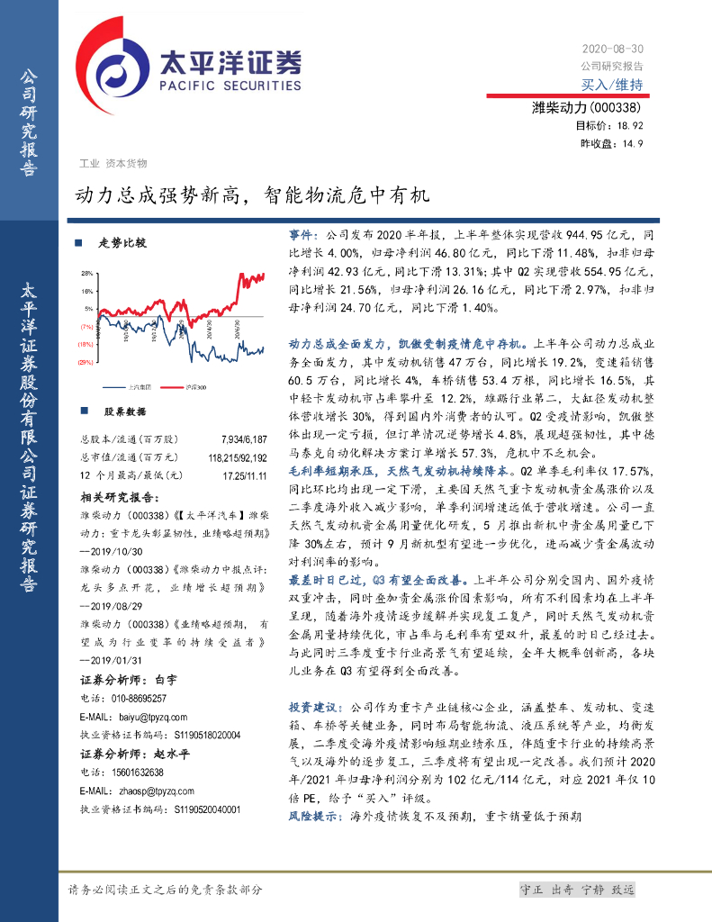 太平洋证券:潍柴动力(000338)-动力总成强势新高,智能物流危中有机.pdf