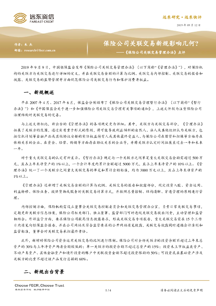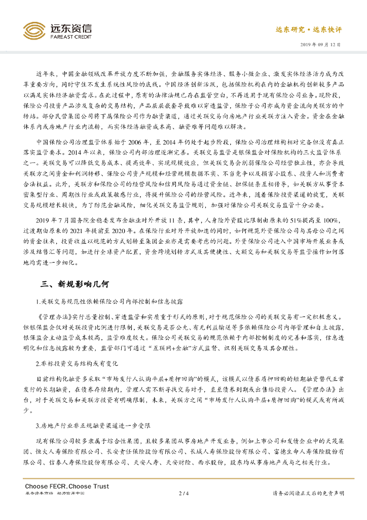 远东资信:保险公司关联交易新规影响几何——《保险公司关联交易管理办法》点评.pdf