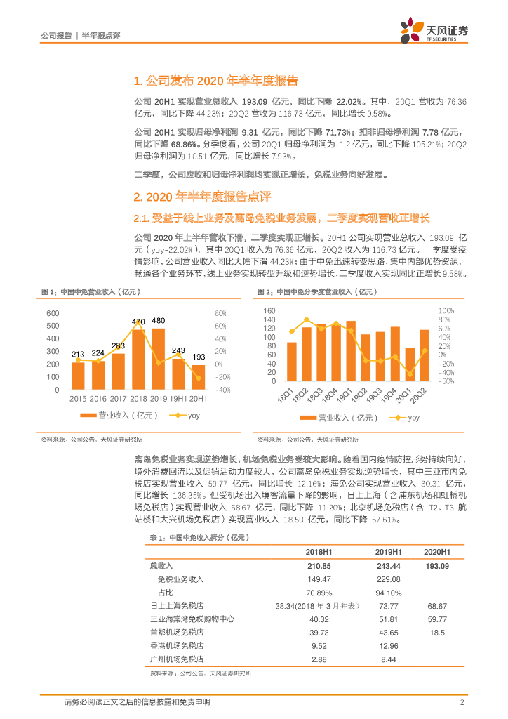 天风证券:中国中免(601888)-二季度营收净利正增长,下半年离岛免税有望迎来业绩高增长.pdf