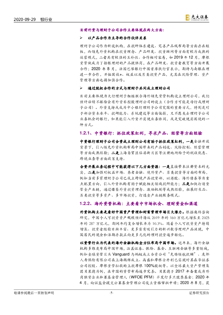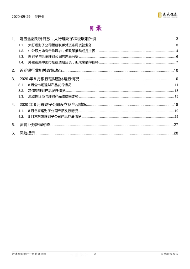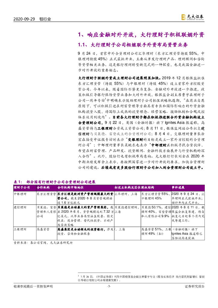 光大证券:银行理财2020年9月报:理财子布局合资理财公司 能否实现1+1>2?.pdf