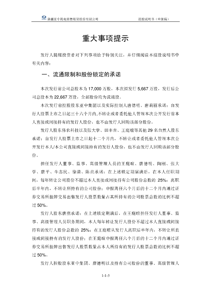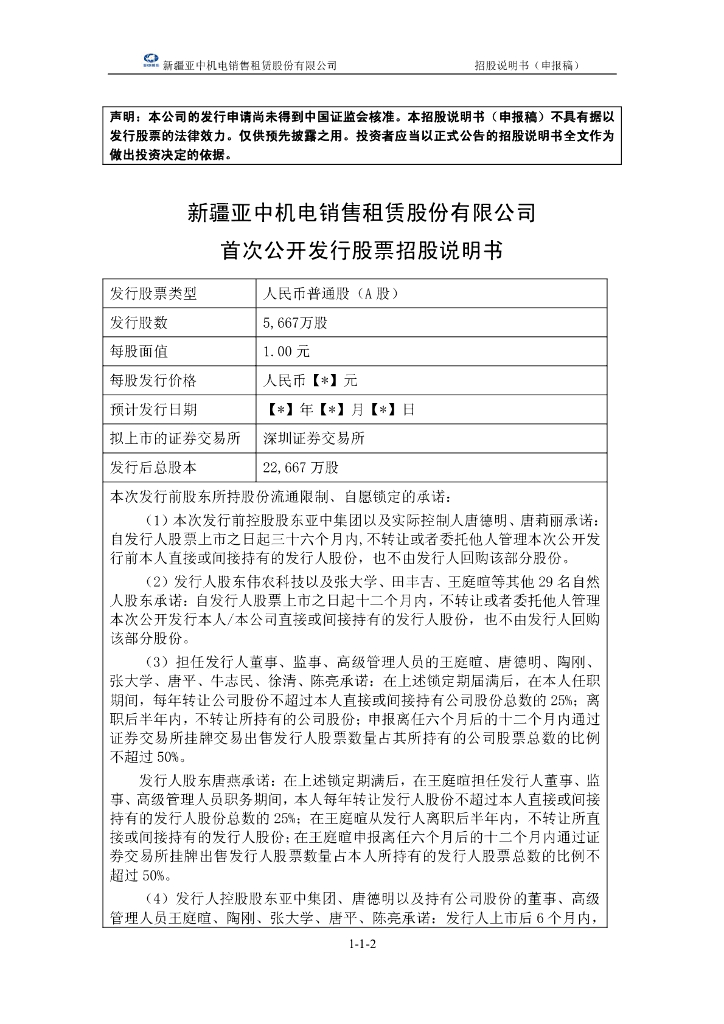 新疆亚中机电销售租赁股份有限公司深交所主板IPO上市招股说明书.pdf