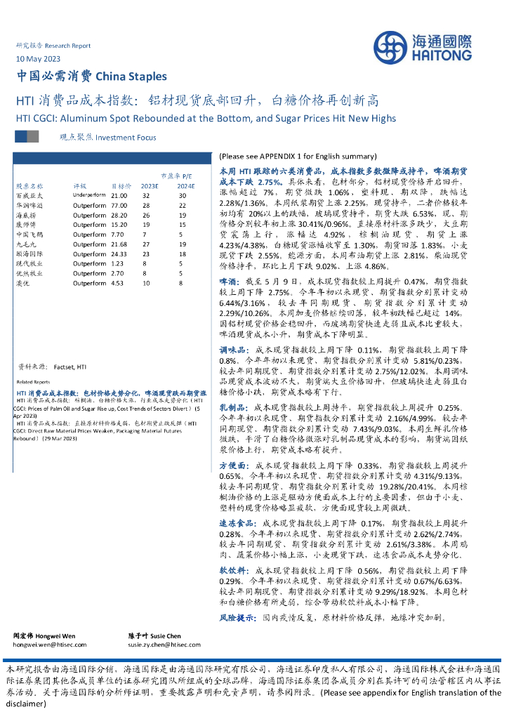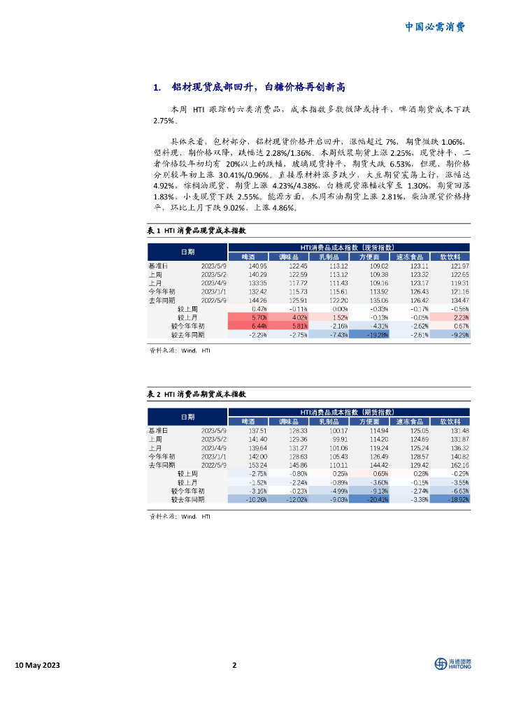 海通国际:HTI消费品成本指数:铝材现货底部回升,白糖价格再创新高.pdf
