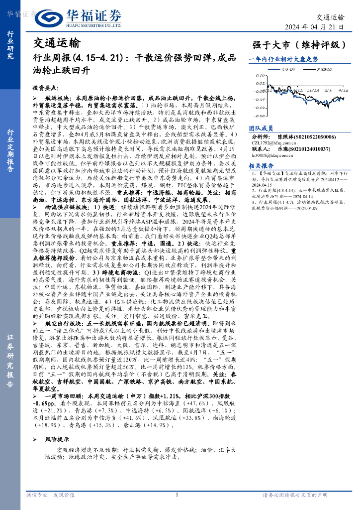 华福证券:交通运输行业周报:干散运价强势回弹,成品油轮止跌回升.pdf