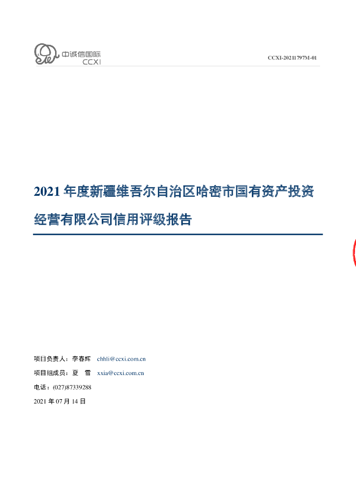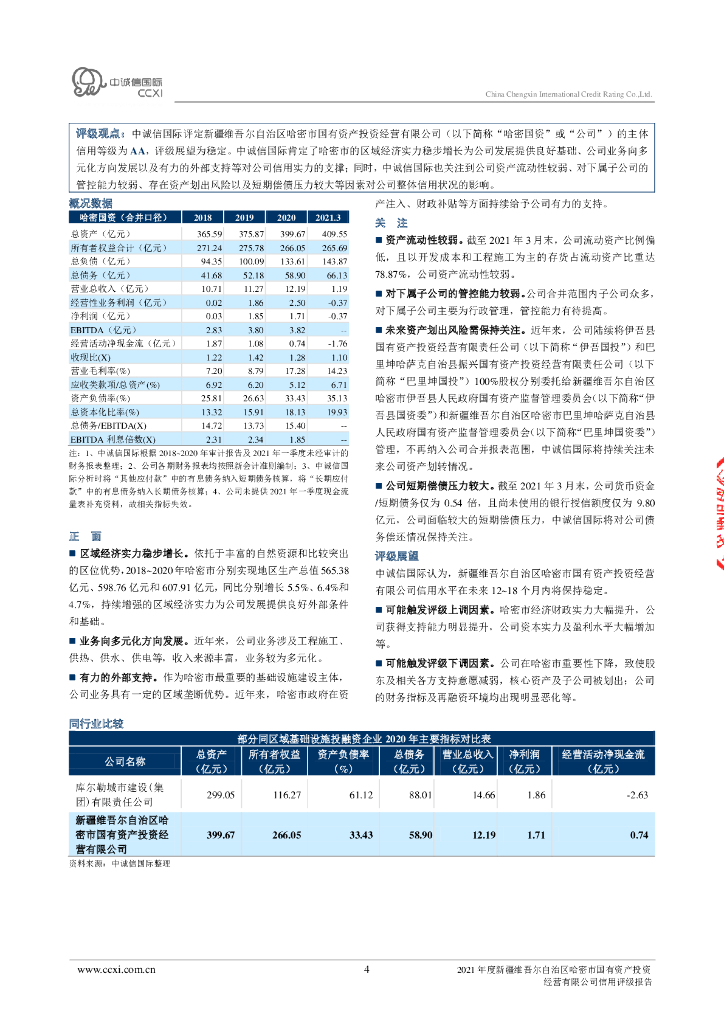 中诚信:新疆维吾尔自治区哈密市国有资产投资经营有限公司2021年度信用评级报告.pdf