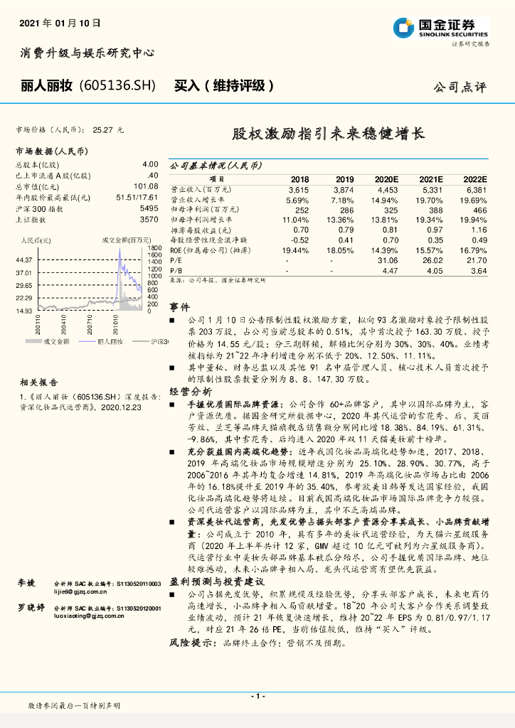 国金证券:丽人丽妆(605136)-股权激励指引未来稳健增长.pdf