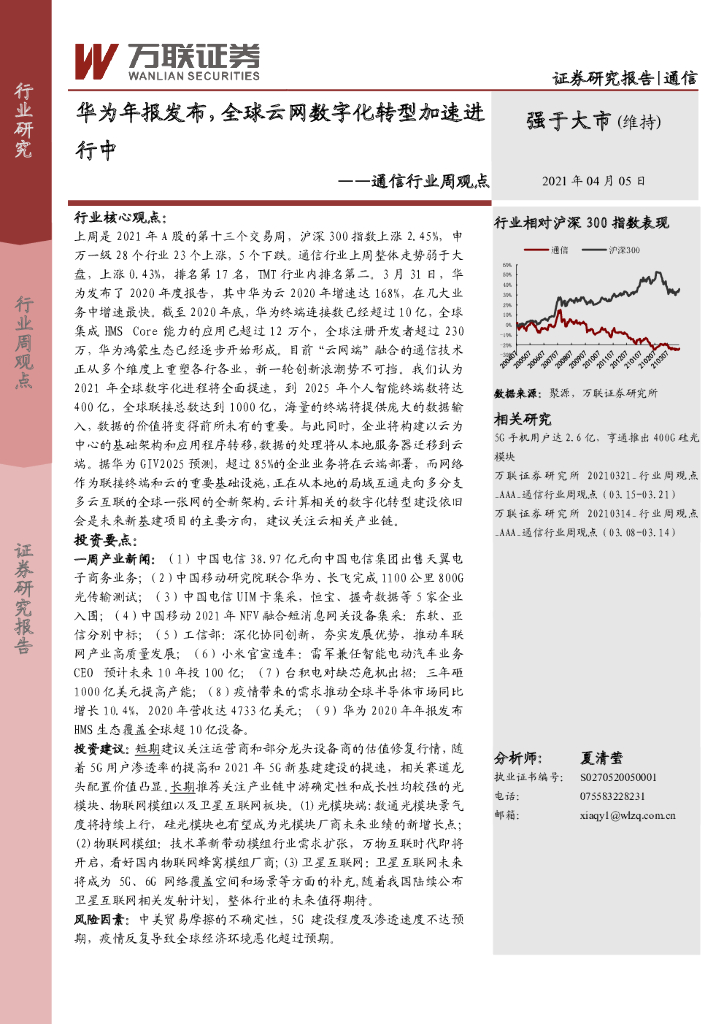 万联证券:通信行业周观点:华为年报发布,全球云网数字化转型加速进行中.pdf