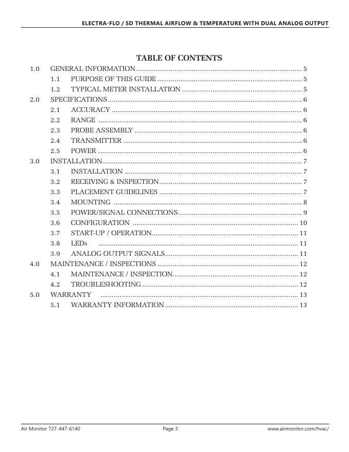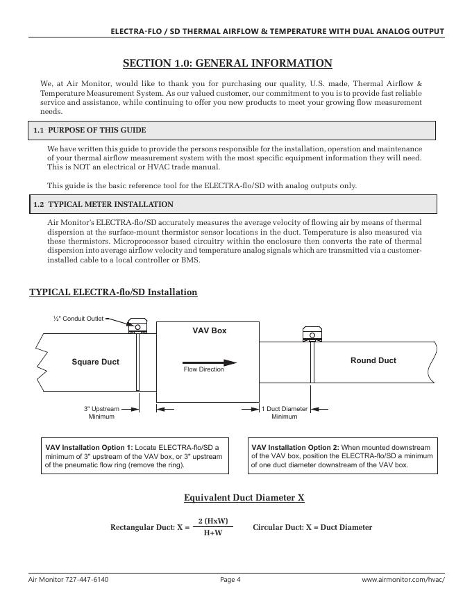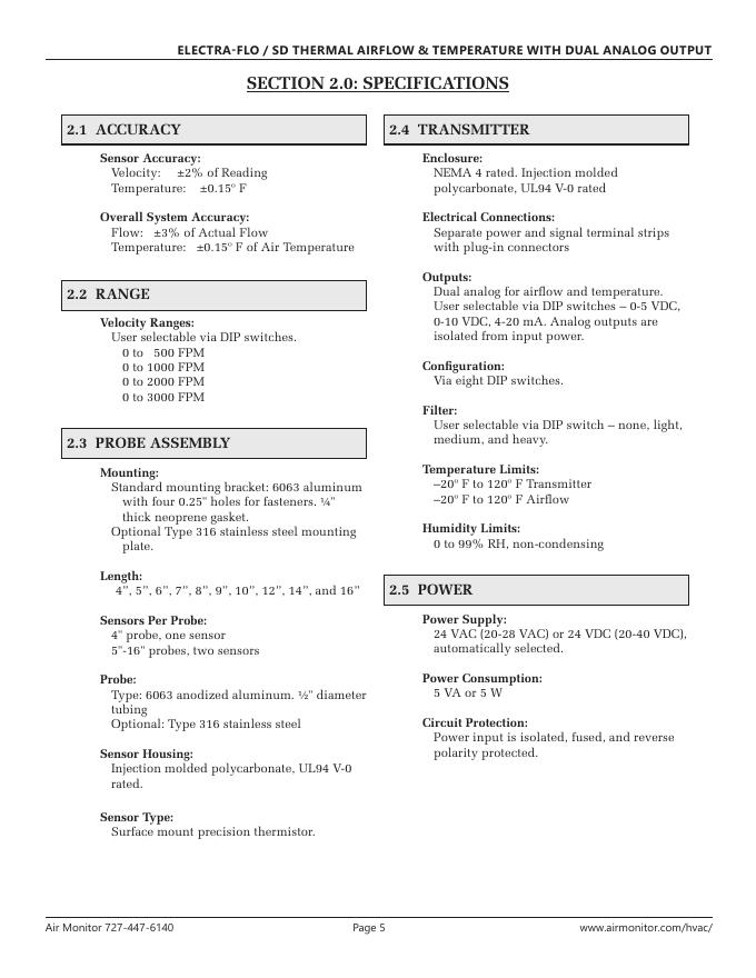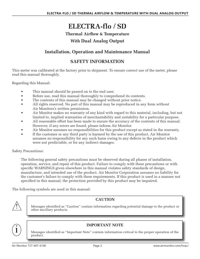 ELECTRA-FLO / SD Thermal Airflow & Temperature With Dual Analog Output 安装、使用及维护手册.pdf