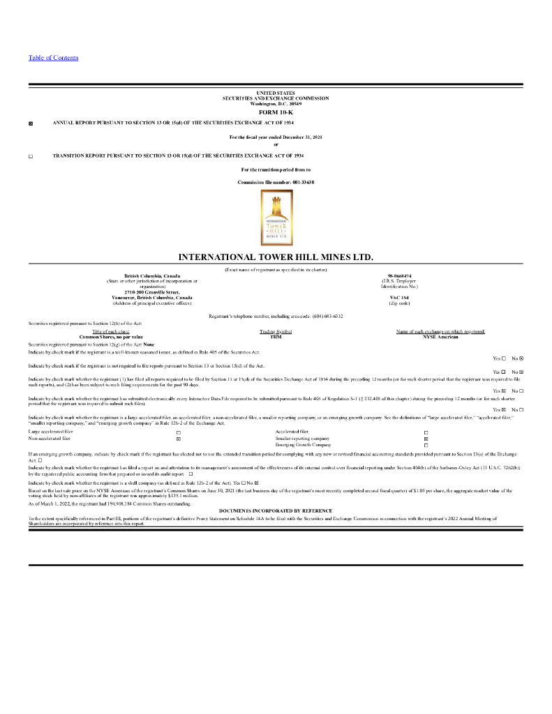 International Tower Hill Mines Ltd.(ITH)2021财年年度报告(英文版).pdf