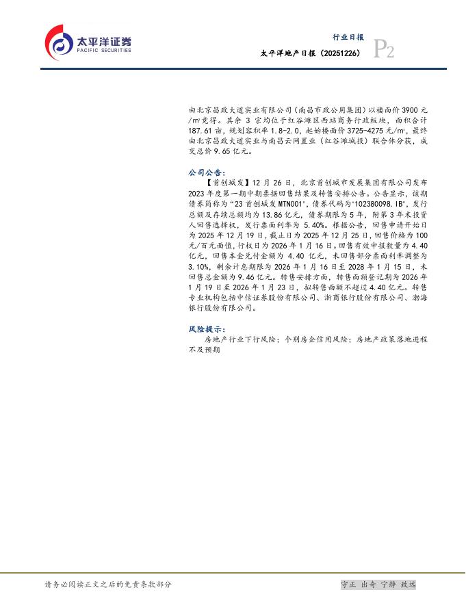 太平洋证券:房地产日报:南昌成交4宗宅地收金11.65亿元.pdf