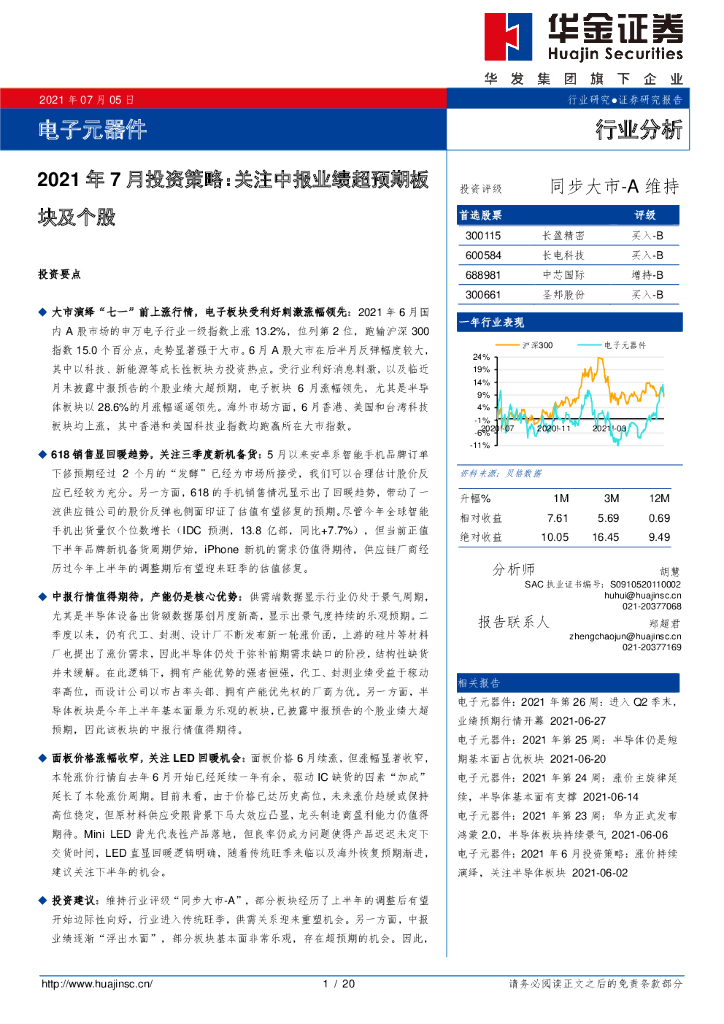 华金证券:电子元器件2021年7月投资策略:关注中报业绩超预期板块及个股.pdf