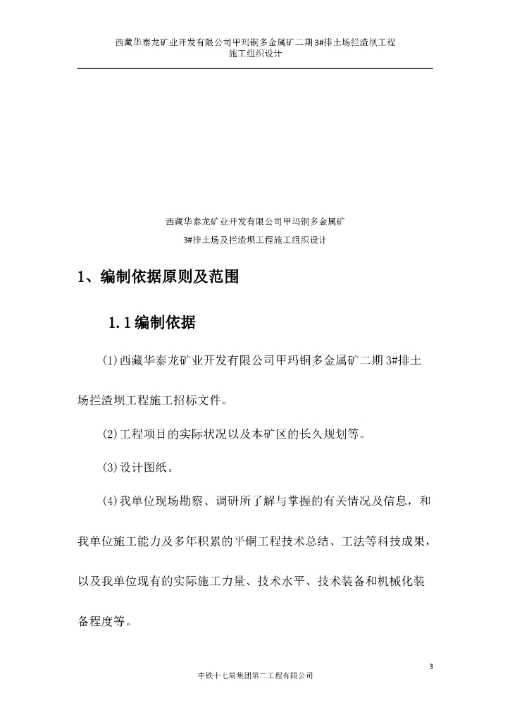 金属矿二期3#排土场拦渣坝工程施工组织设计.doc