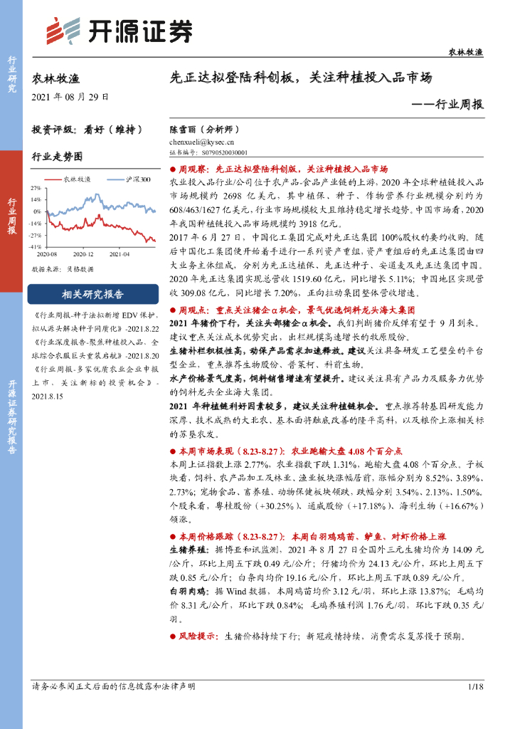 开源证券:农林牧渔行业周报:先正达拟登陆科创板,关注种植投入品市场.pdf