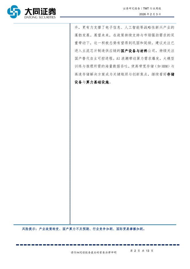 大同证券:TMT行业周报:半导体领跑增长、智能设备支撑“新质生产力”.pdf