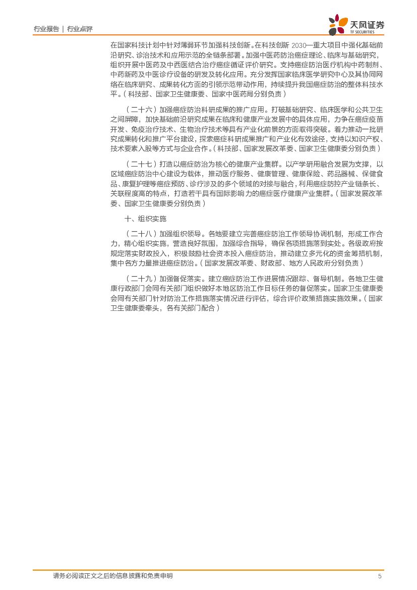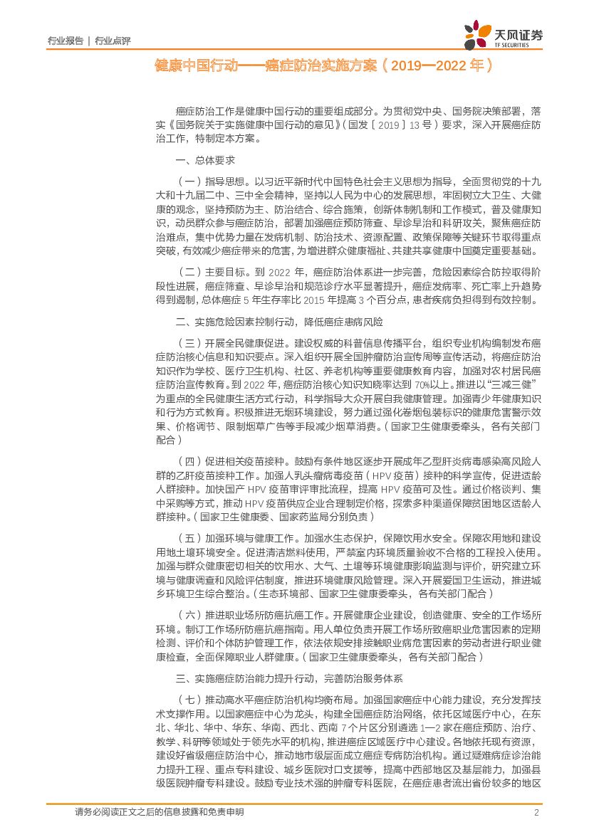 天风证券:医药生物:《癌症防治实施方案》发布,建议关注相关领域投资机会.pdf