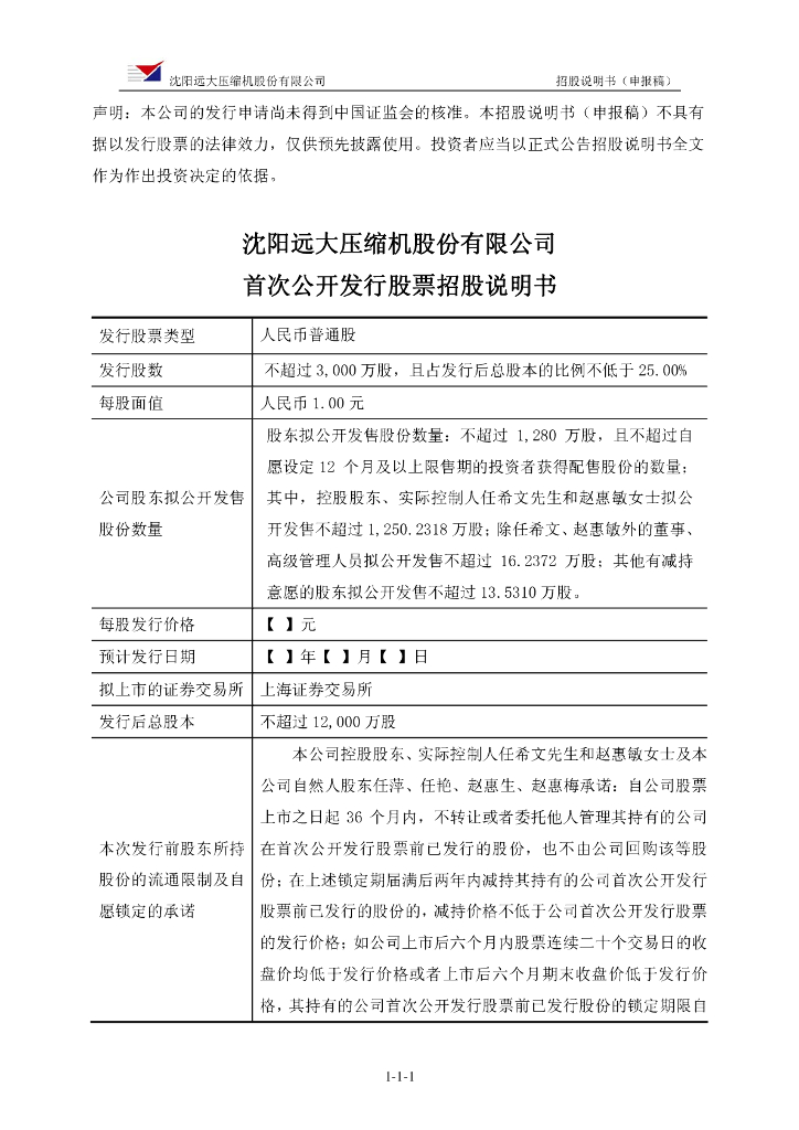 沈阳远大压缩机股份有限公司上交所主板IPO上市招股说明书.pdf