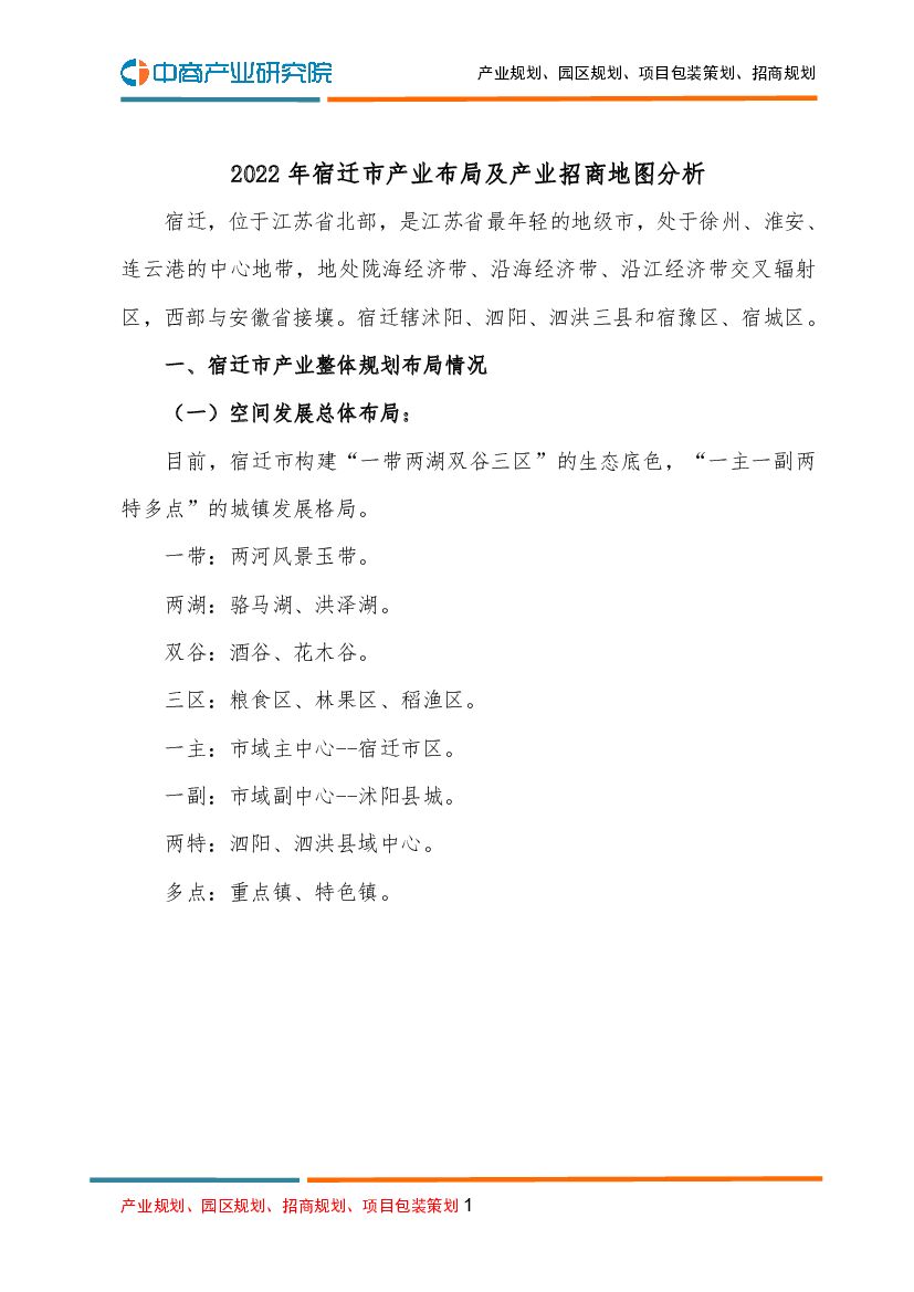 2022年宿迁市产业布局及产业招商地图分析.pdf