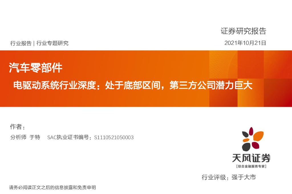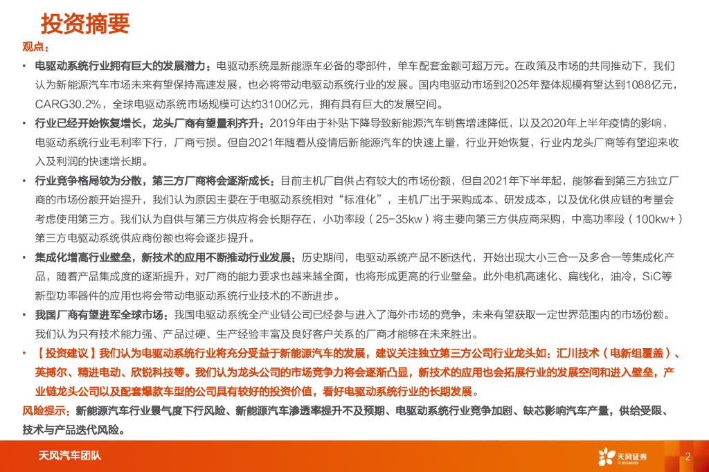 天风证券:汽车零部件:电驱动系统行业深度:处于底部区间,第三方公司潜力巨大.pdf