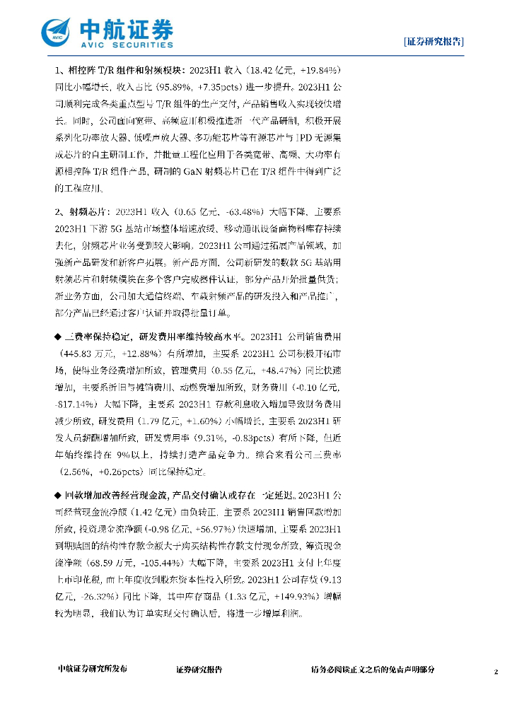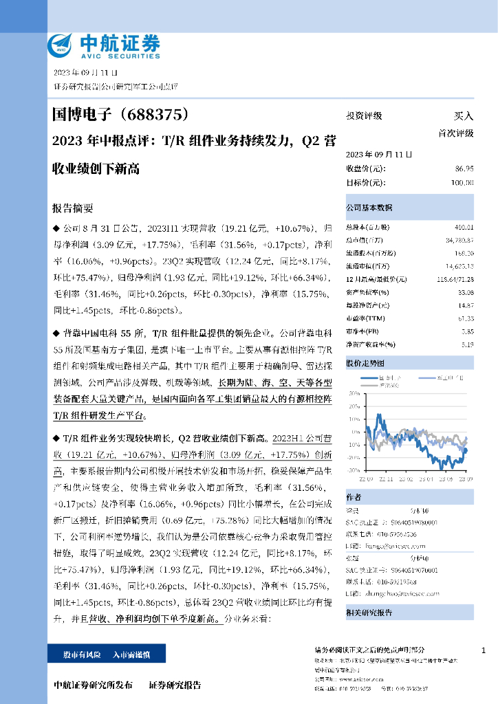 中航证券:国博电子(688375)-2023年中报点评:T/R组件业务持续发力,Q2营收业绩创下新高.pdf