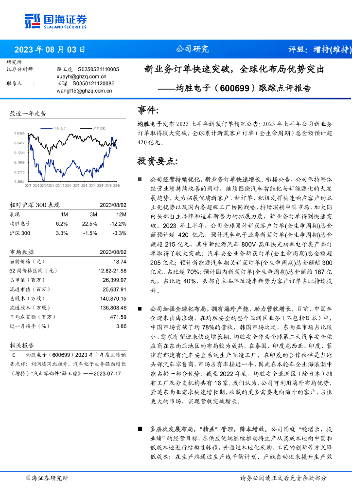 国海证券:均胜电子(600699)-跟踪点评报告:新业务订单快速突破,全球化布局优势突出.pdf
