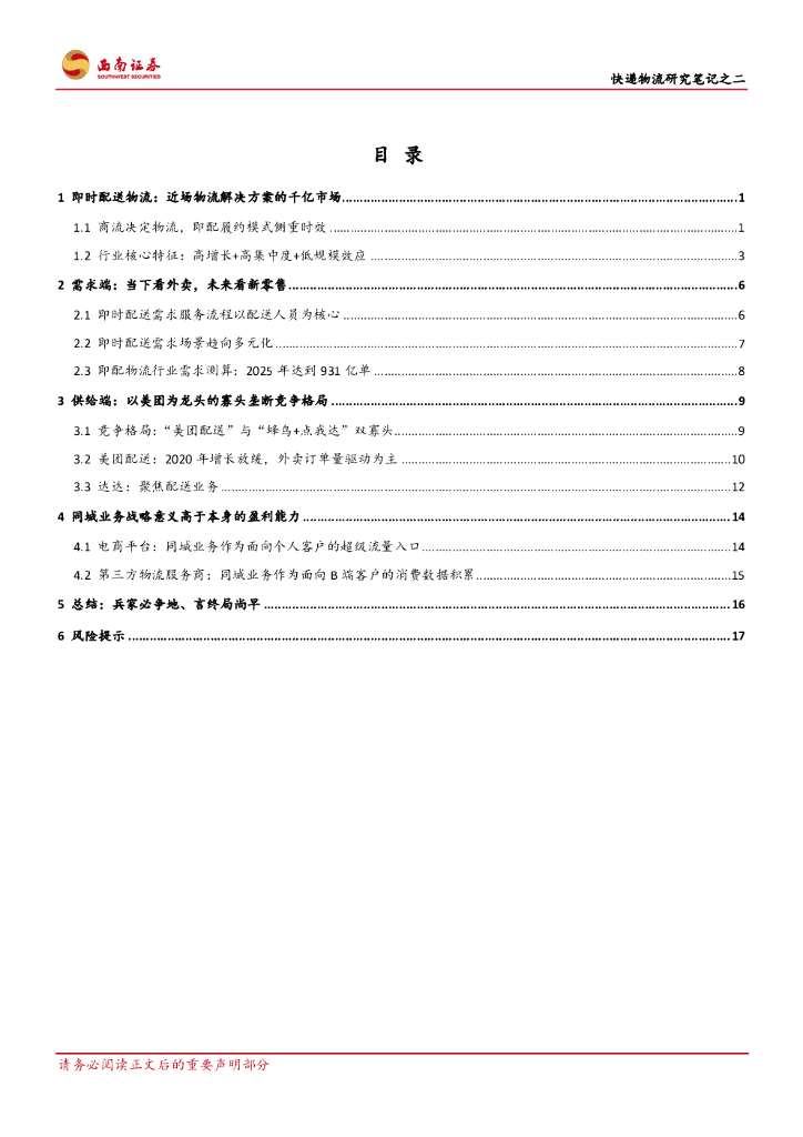西南证券:快递物流研究笔记之二:即时配送市场是否已成红海.pdf