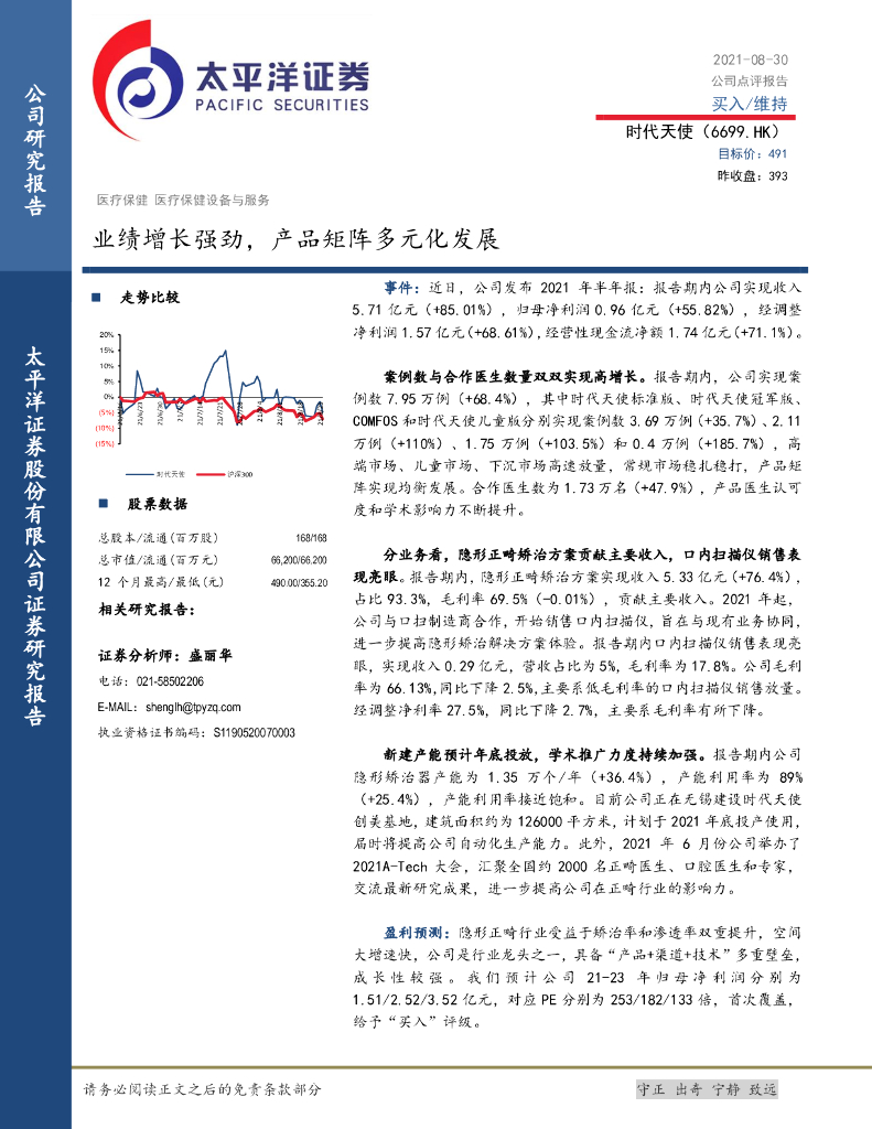 太平洋证券:时代天使(06699)港股公司研究报告-业绩增长强劲,产品矩阵多元化发展.pdf