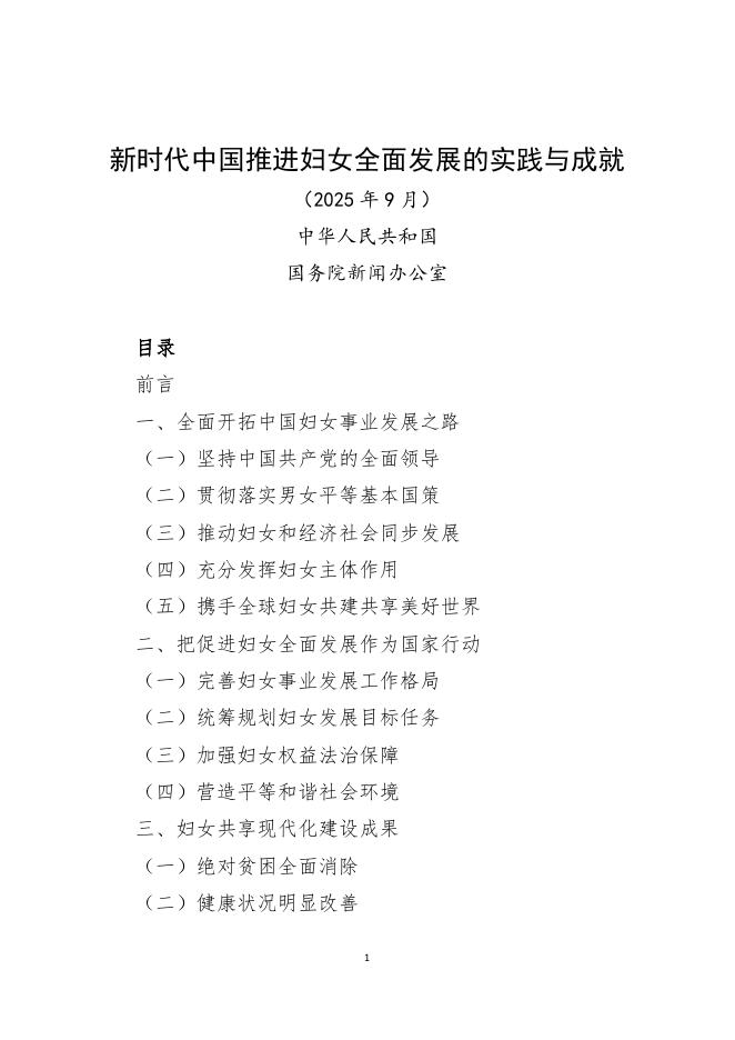 国务院新闻办:新时代中国推进妇女全面发展的实践与成就报告(2025年9月).pdf
