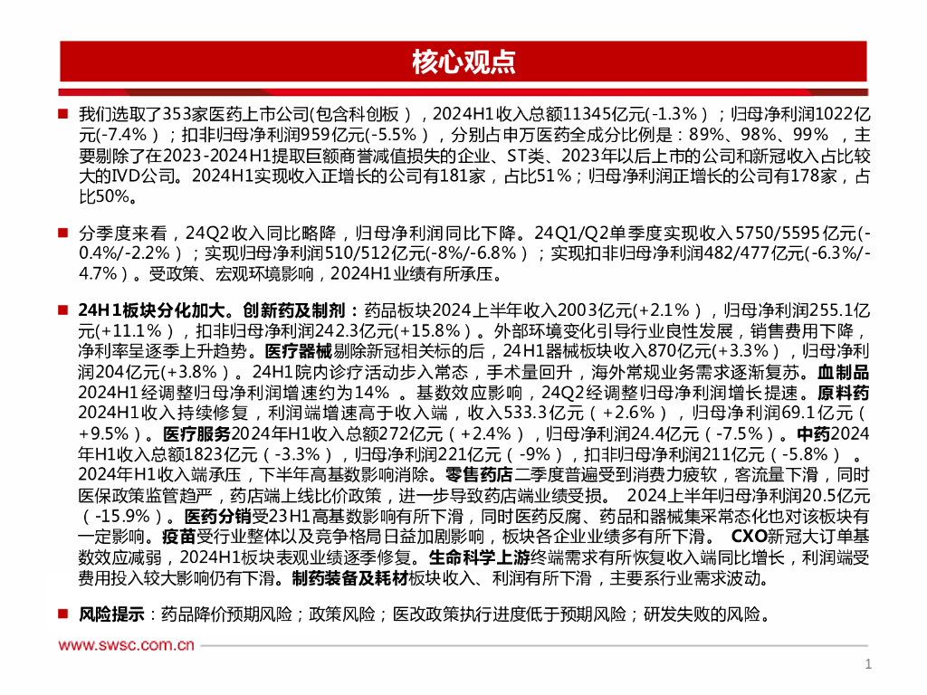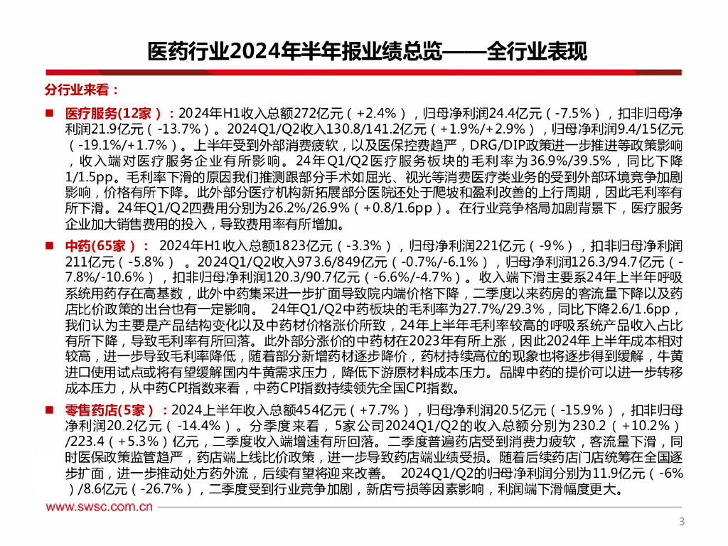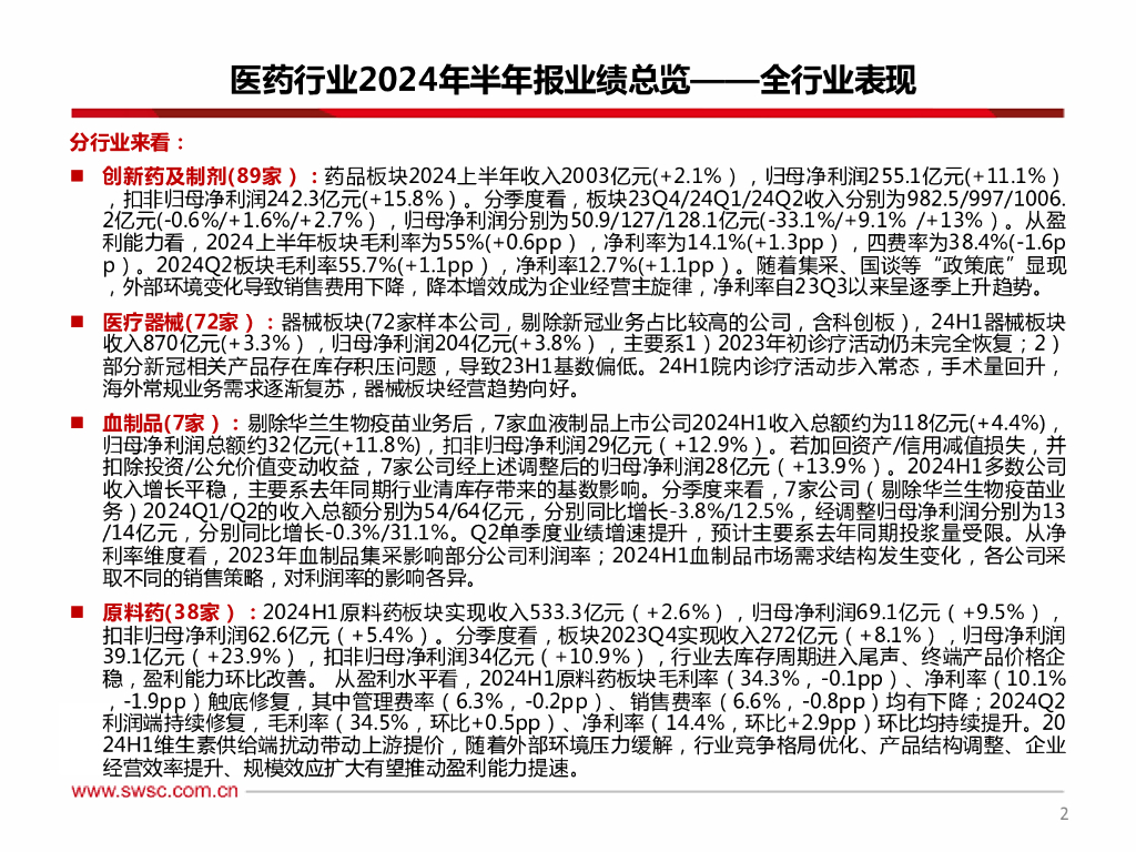 西南证券:医药行业2024年半年报总结:期待下半年业绩恢复.pdf