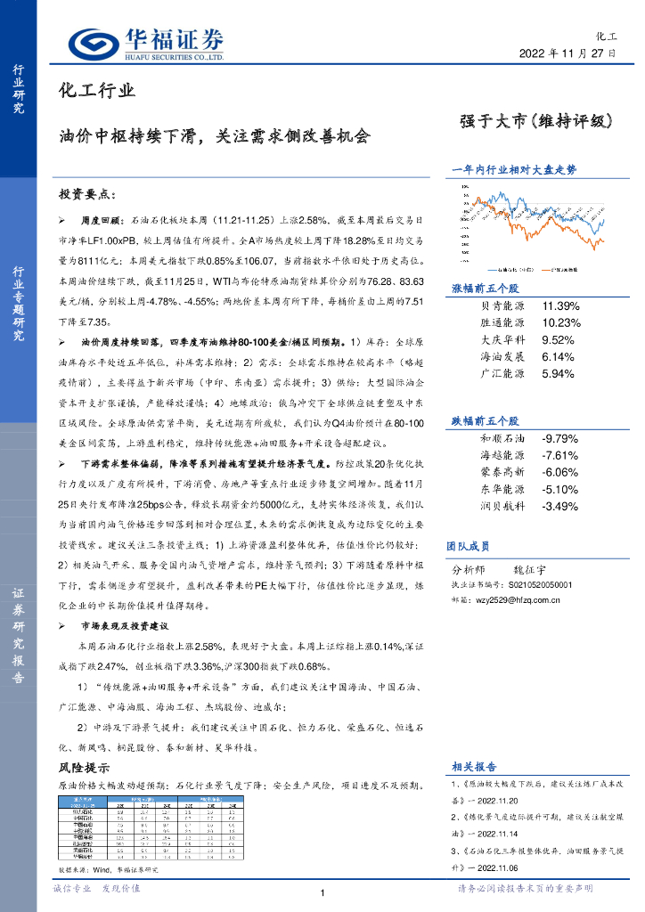 华福证券:化工行业:油价中枢持续下滑,关注需求侧改善机会.pdf