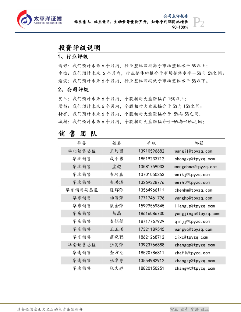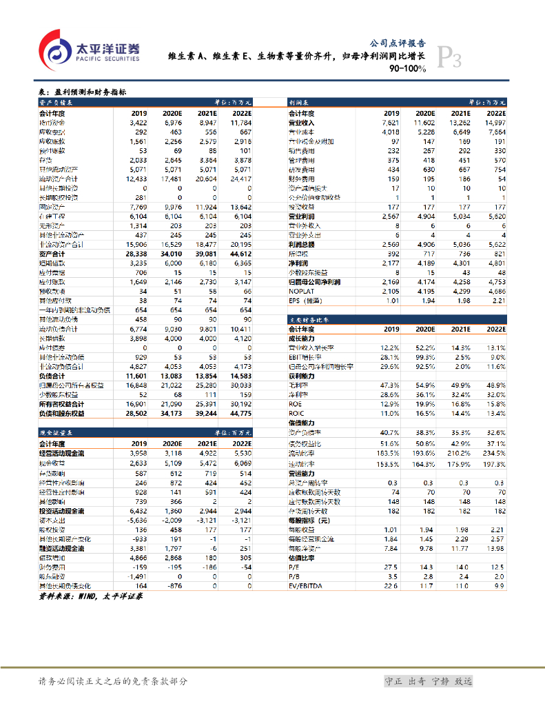 太平洋证券:新和成(002001)-维生素A、维生素E、生物素等量价齐升,归母净利润同比增长90-100%.pdf