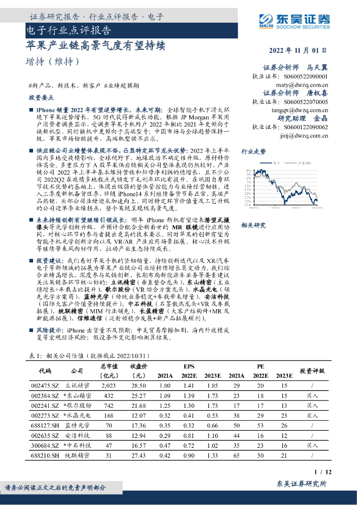 东吴证券:电子行业点评报告:苹果产业链高景气度有望持续.pdf