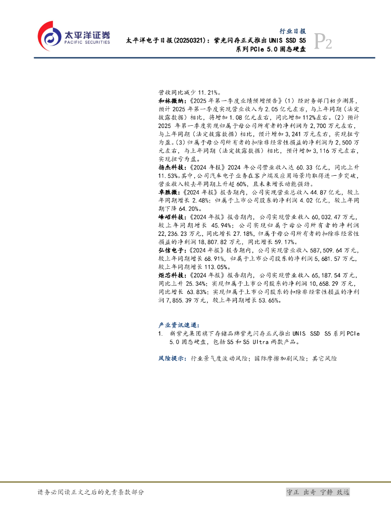 太平洋证券:电子日报:紫光闪存正式推出UNISSSDS5系列PCIe5.0固态硬盘.pdf