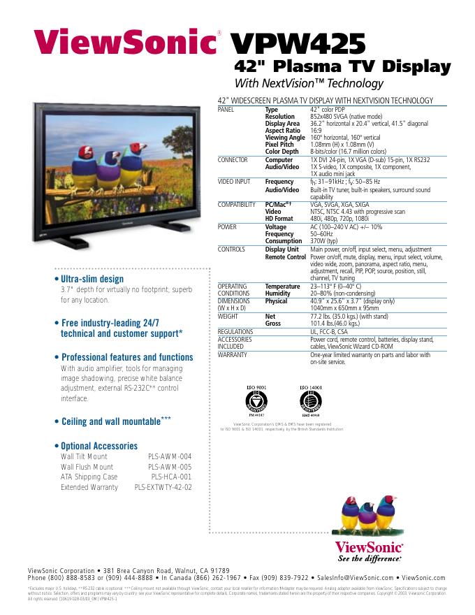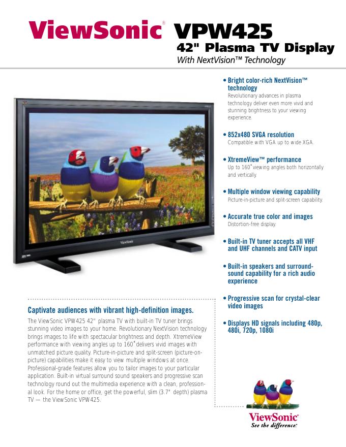ViewSonic VPW425 42" Plasma TV Display 使用手册.pdf