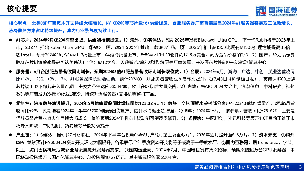 国海证券:AI算力月度跟踪(202407):多环节验证算力景气提速、且2024Q3预期乐观.pdf