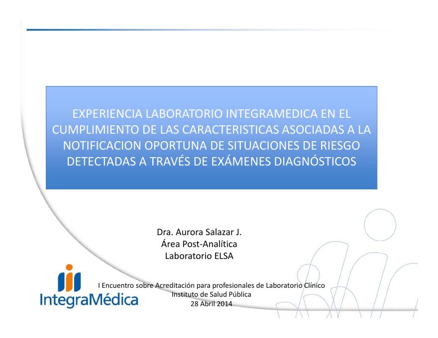 EXPERIENCIA LABORATORIO INTEGRAMEDICA EN EL CUMPLIMIENTO DE LAS CARACTERISTICAS ASOCIADAS A LA NOTIFICACION OPORTUNA DE SITUACIONES DE RIESGO DETECTADAS A TRAVÉS DE EXÁMENES DIAGNÓSTICOS.pdf