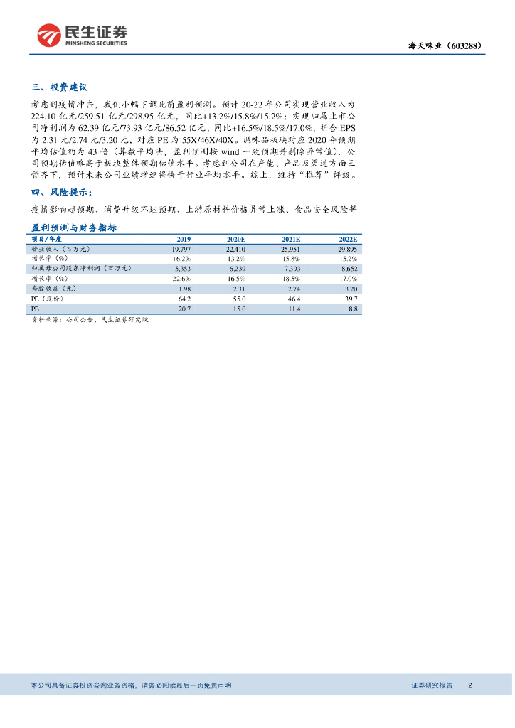 民生证券:海天味业(603288)-2020年一季报点评:促销战略助收入增长,弱势区域显著放量.pdf