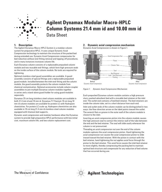 Agilent Dynamax Modular Macro HPLC Column Systems 21.4 mm id and 10.00 id 数据手册.pdf